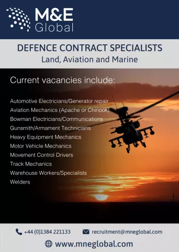 At M&E Global, we have built up a strong reputation in defence recruitment. We offer expertise in aviation, land and marine environments across maintenance, repair, logistics and transportation support, and are experts in helping ex-military personnel in their move back to civilian employment so that they can utilise their skills and get to where they want to be.